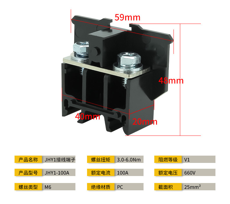 JHY1-100A接线青青草成人网适用与交流50HZ(或60HZ)额定电压660V或直流电压440V的电路中作为1.0MM2铜导线的连接之用,其性能符合GB/T14048。1-2000《低压开关设备和控制设备总则》也符合IEC947-7-1:2000的标