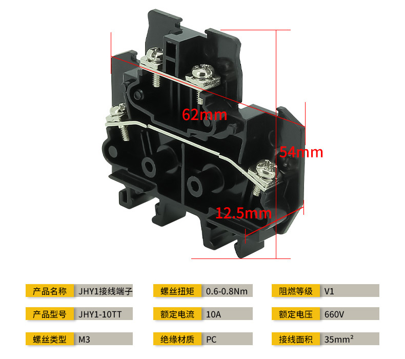 JHY1-10TT接线青青草成人网适用与交流50HZ(或60HZ)额定电压660V或直流电压440V的电路中作为1.0MM2铜导线的连接之用,其性能符合GB/T14048。1-2000《低压开关设备和控制设备总则》也符合IEC947-7-1:2000的标